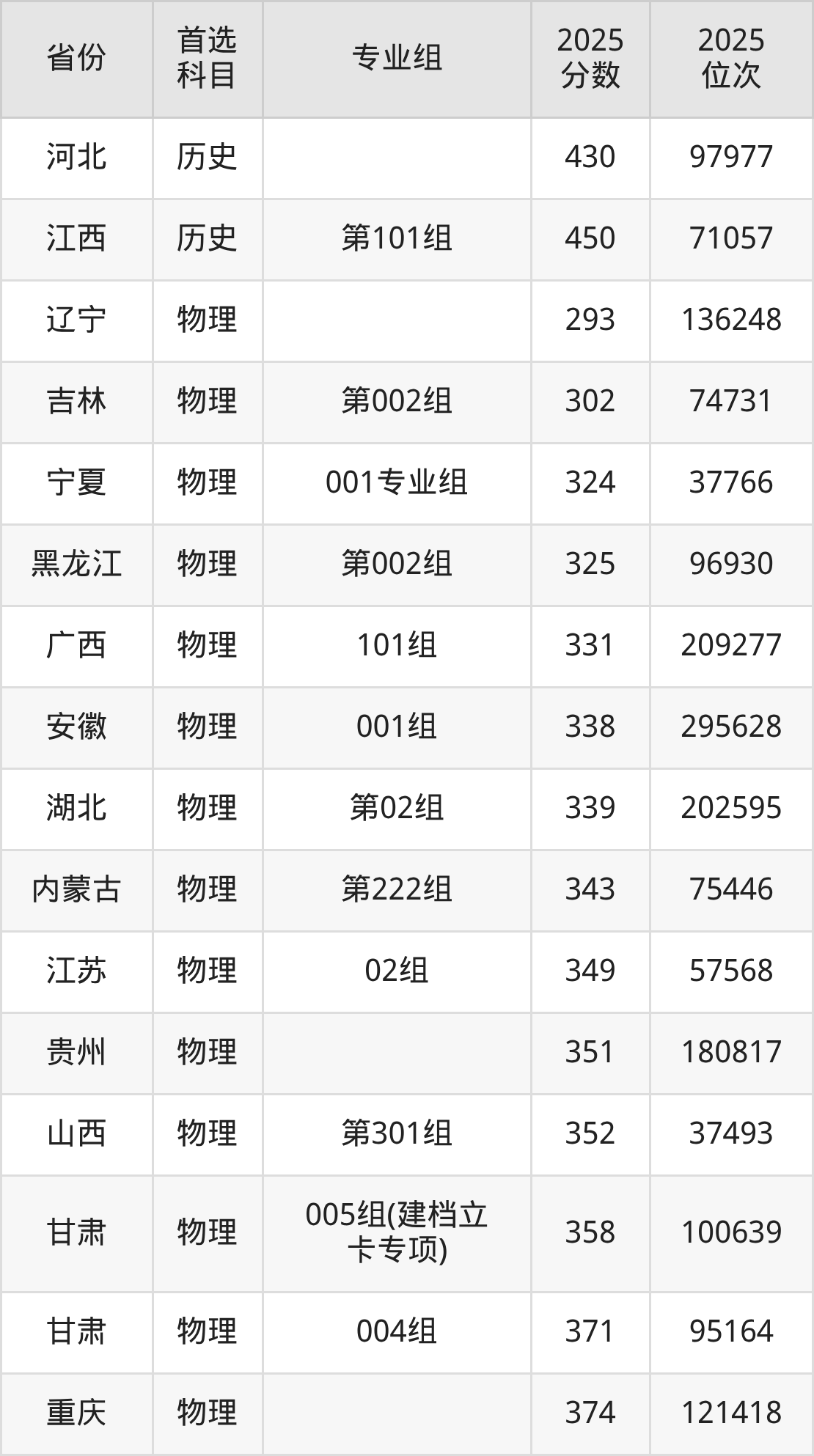 为了方便各地区考生们查看甘肃交通职业技术学院的录取情况,本文也整理出2025年甘肃交通职业技术学院在全国各省的录取分数线,供参考。