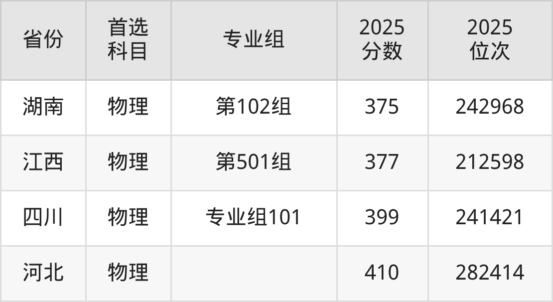 物理类最低分对应地区为辽宁,录取位次为136248,超专科线143分;最高分对应地区为河北,录取位次为282414。