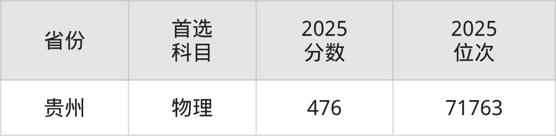 物理类最低分对应地区为贵州,录取位次为71763,超本科线89分。