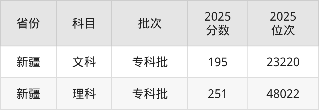 文科最低分对应地区为新疆,录取位次为23220,超专科线55分。