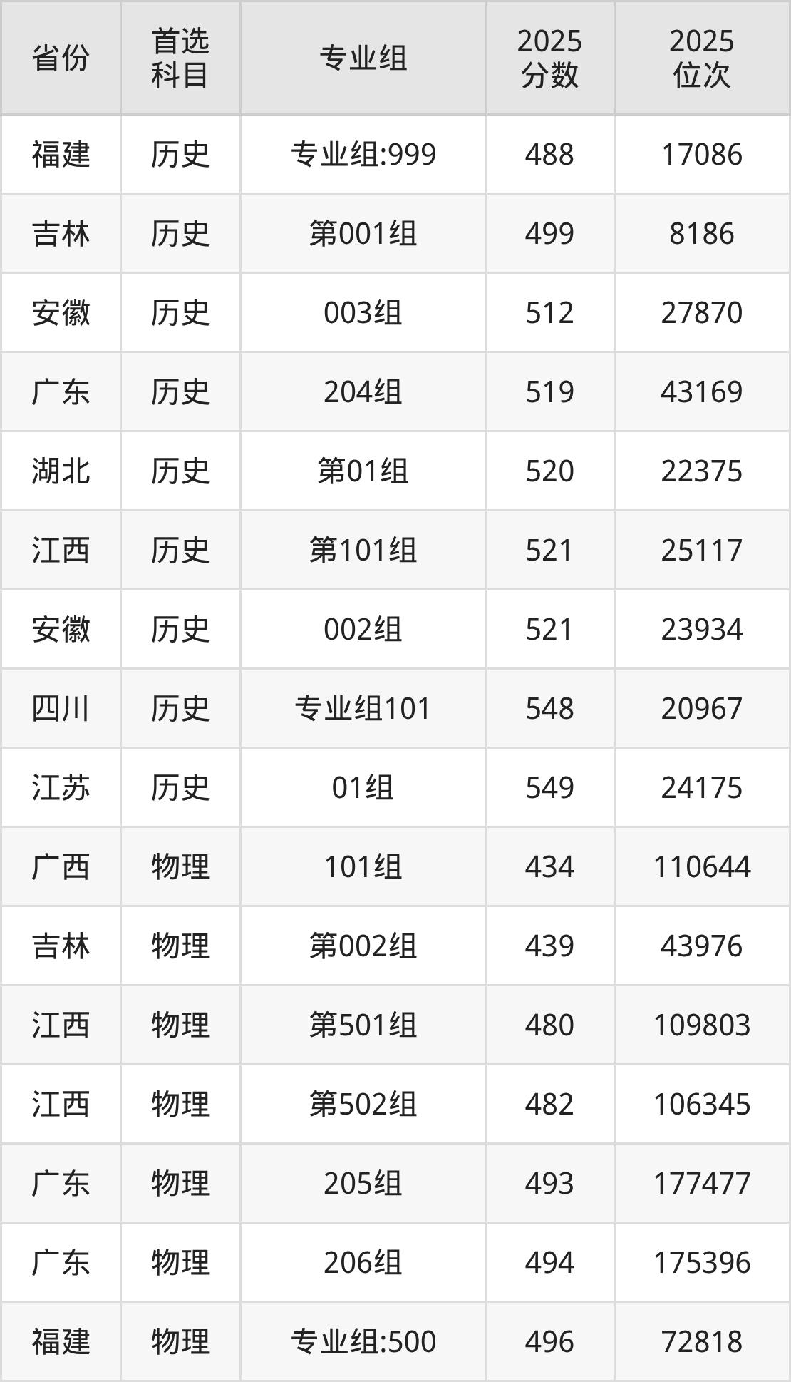 物理类:002组514分、113852名,003组497分、138545名,004组506分、125257名,005组501分、132951名;