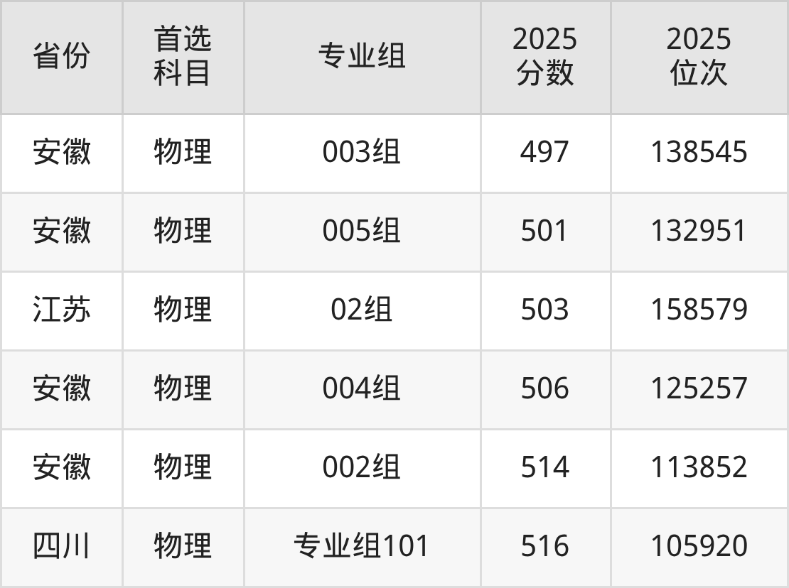 物理类最低分对应地区为广西(101组),录取位次为110644,超本科线64分;最高分对应地区为四川(专业组101),录取位次为105920,超本科B78分。