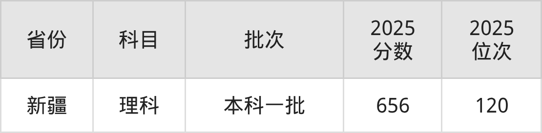 理科最低分对应地区为新疆,录取位次为120,超一本线235分。