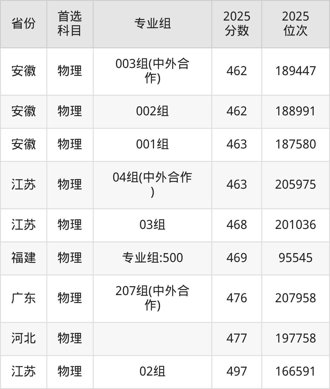物理类最低分对应地区为宁夏(003专业组),录取位次为41555,超专科线138分;最高分对应地区为江苏(02组),录取位次为166591,超本科线34分。