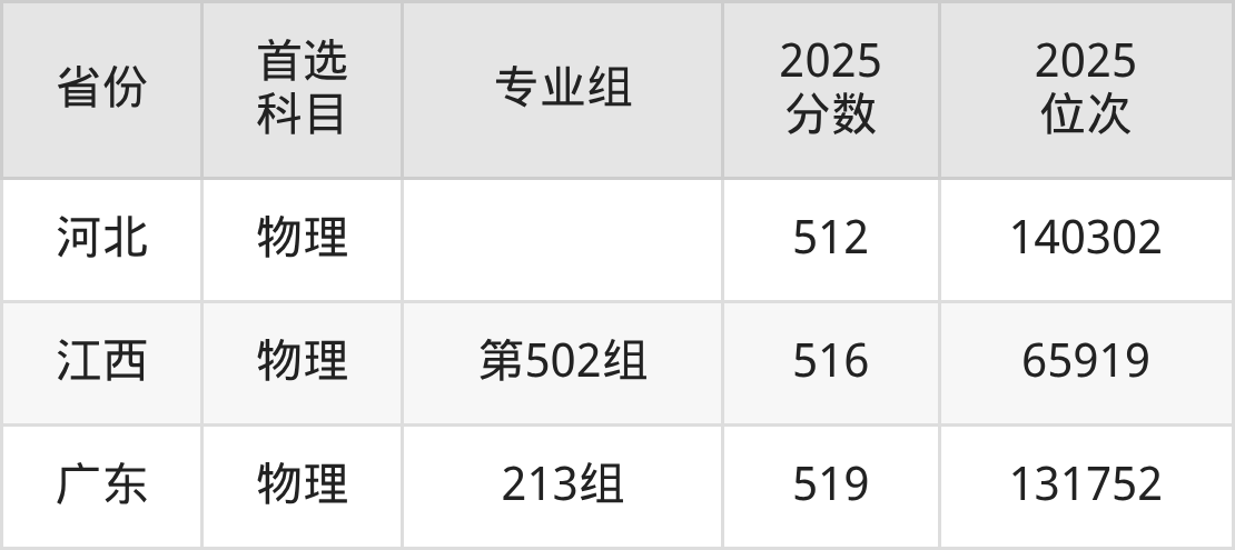 物理类最低分对应地区为黑龙江(第008组),录取位次为54591,超本科线78分;最高分对应地区为广东(213组),录取位次为131752,超本科线83分。