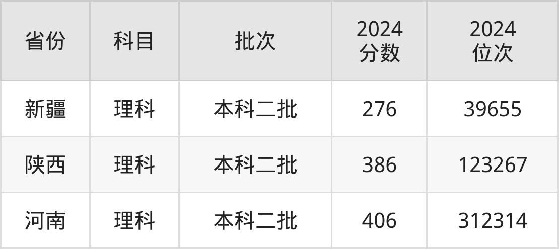 理科最低分对应地区为新疆,录取位次为39655,超二本线14分;最高分对应地区为河南,录取位次为312314,超二本线10分。