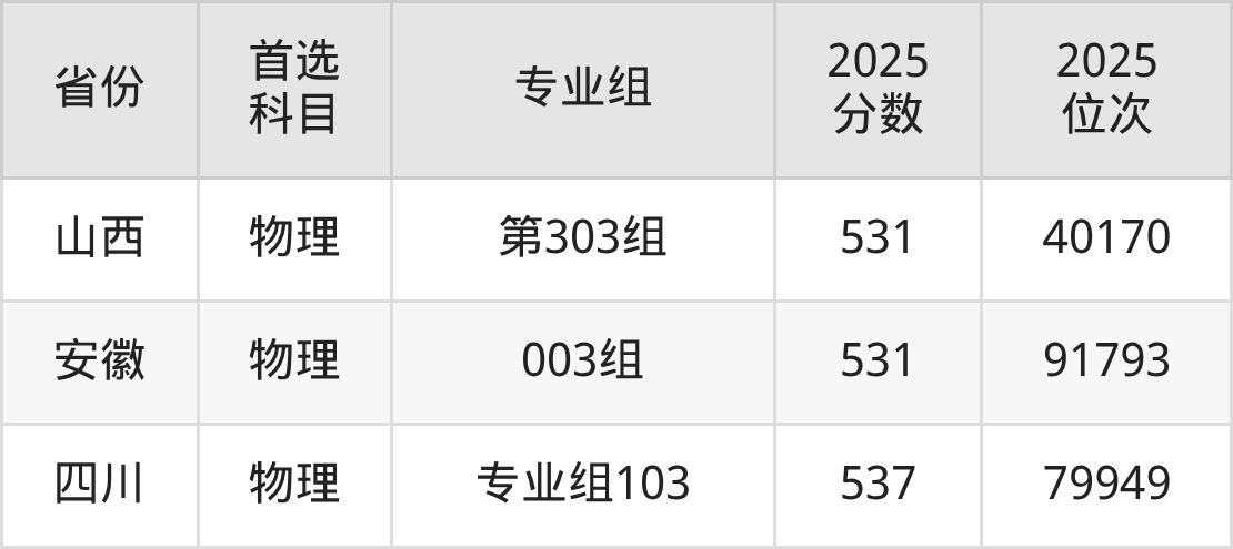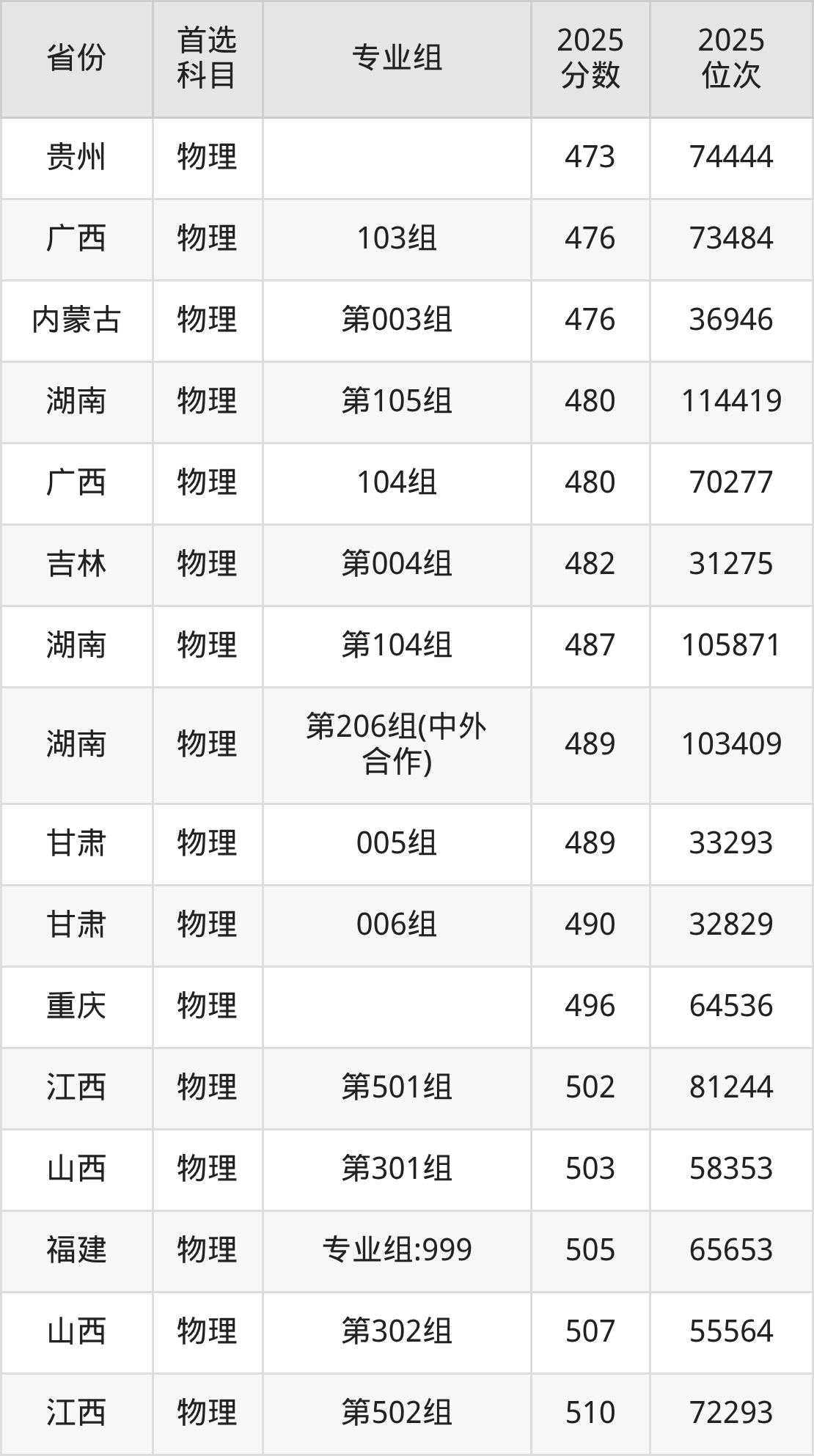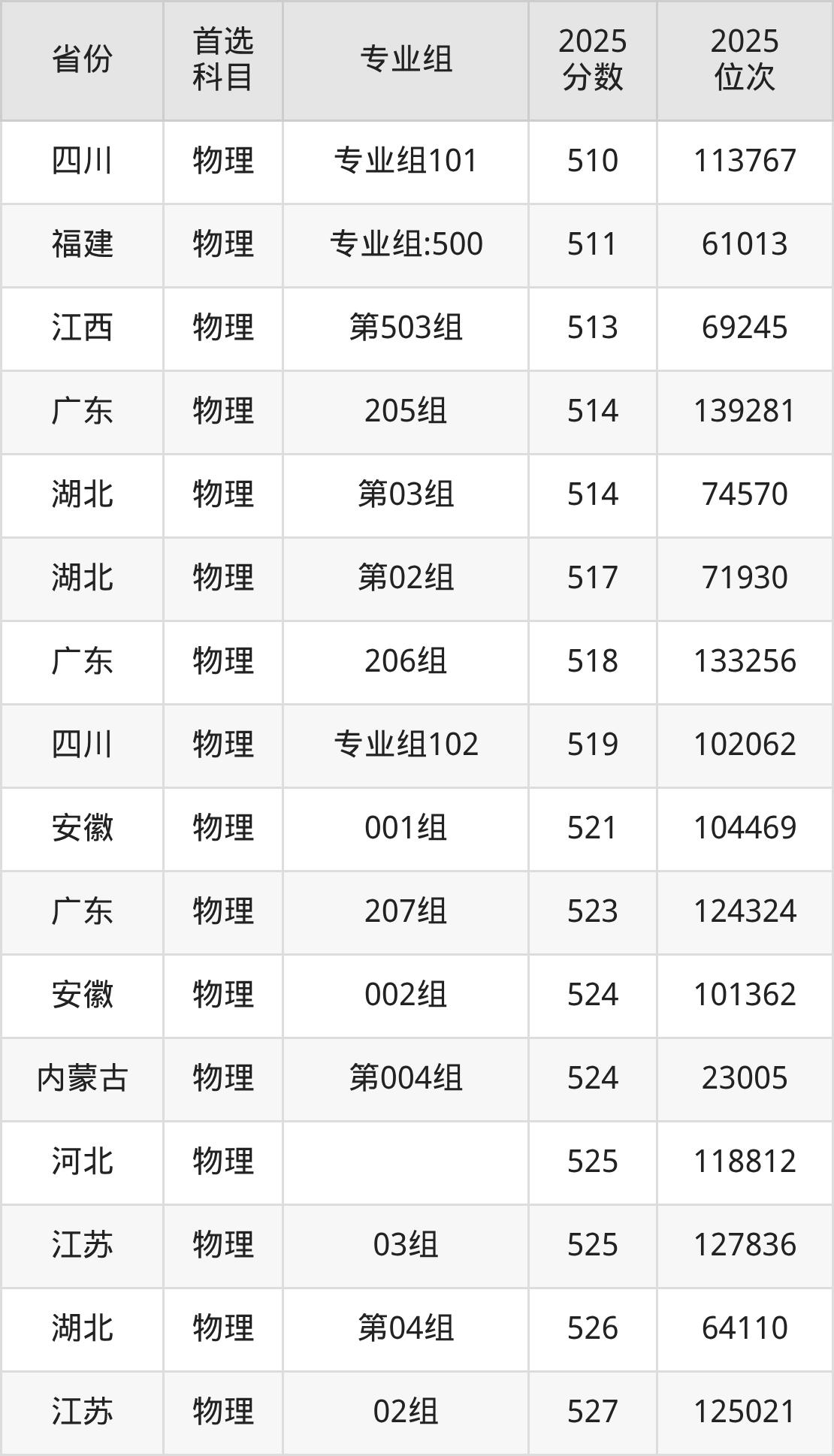 物理类最低分对应地区为黑龙江(第002组),录取位次为53055,超本科线82分;最高分对应地区为四川(专业组103),录取位次为79949,超本科B99分。