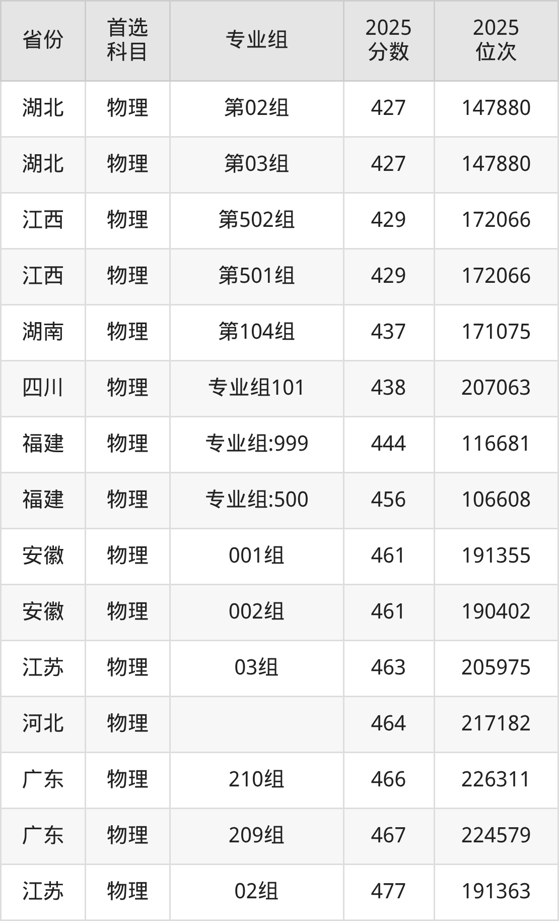 物理类:第501组429分、172066名,第502组429分、172066名;