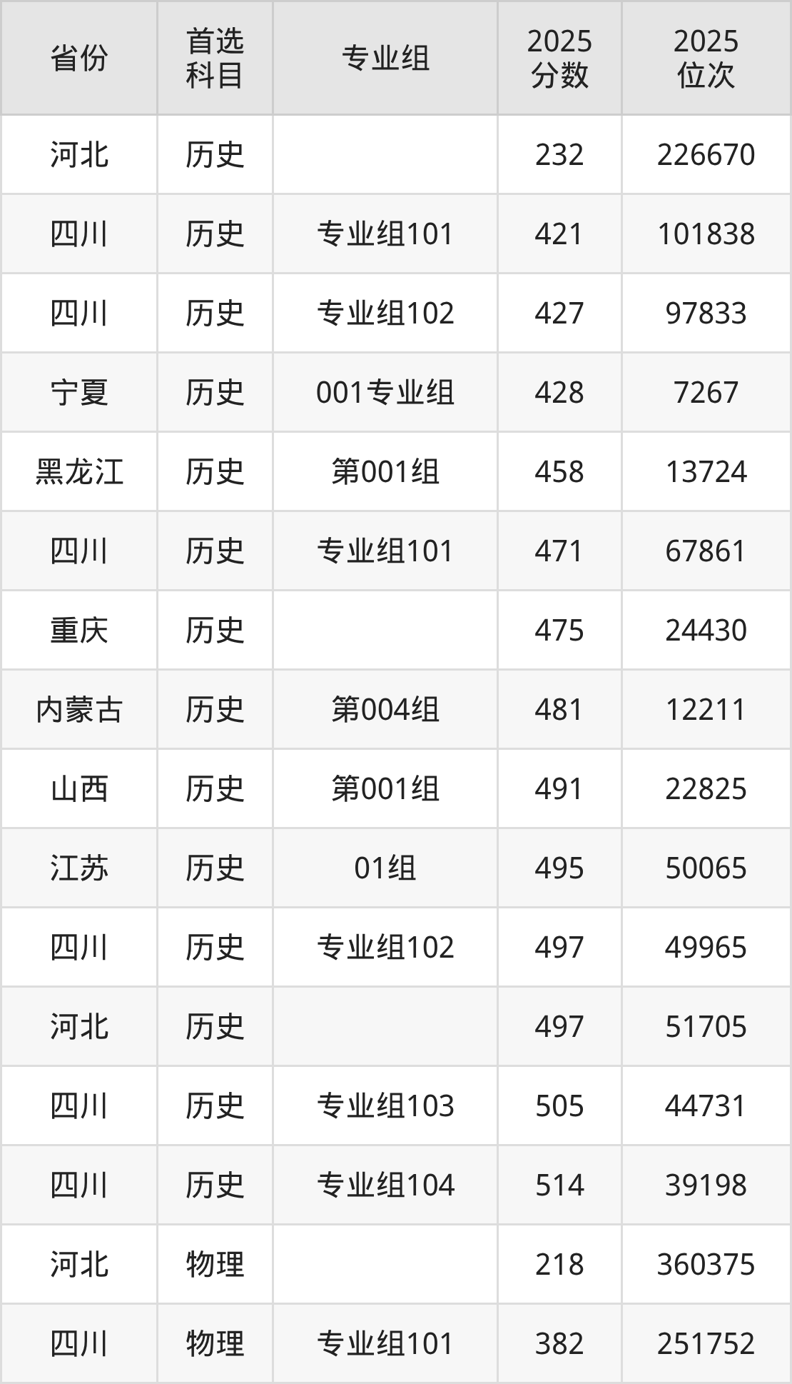 因为2026年的录取数据是录取结束后才会公布,因此2026年考生想知道多少分能上成都文理学院的话,只能参考近三年(2023年-2025年)的录取数据。