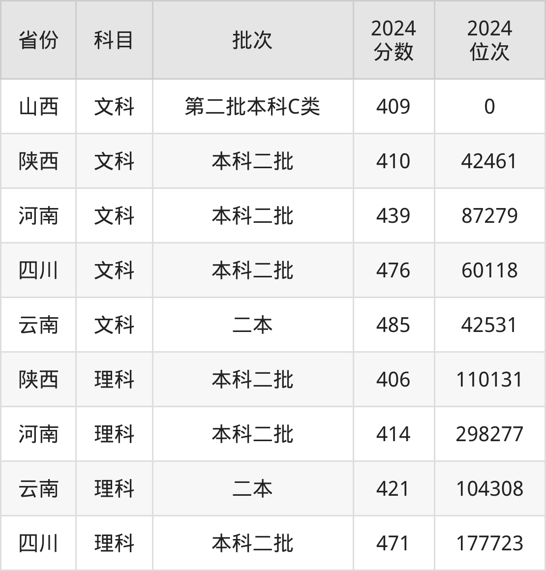 理科最低分对应地区为陕西,录取位次为110131,超二本线34分;最高分对应地区为四川,录取位次为177723,超二本线12分。