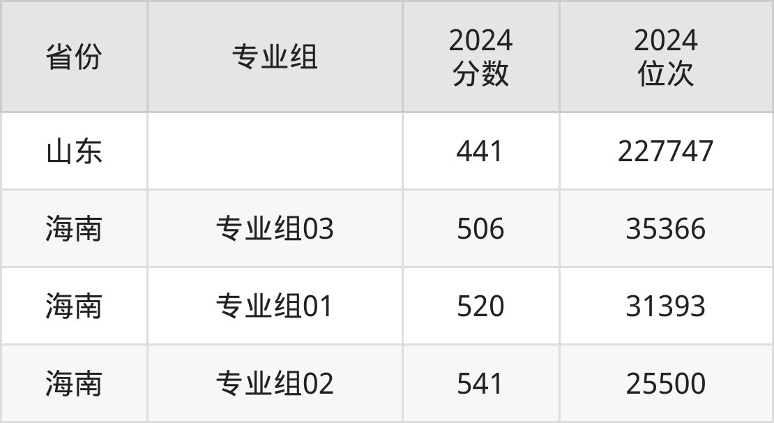 最低分对应地区为山东,录取位次为227747,超一段线37分;最高分对应地区为海南(专业组02),录取位次为25500,超本科线58分。