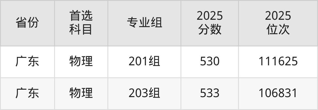 物理类:201组530分、111625名,203组533分、106831名,503组468分、222714名,504组464分、229926名,505组(中外合作)435分、277894名,506组387分、339597名,507组353分、371254名,508组(中外合作)366分、360371名;