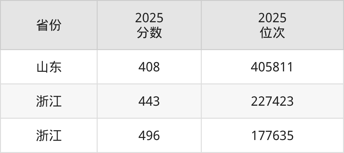最低分对应地区为山东,录取位次为405811,超二段线273分;最高分对应地区为浙江,录取位次为177635,超一段线6分。