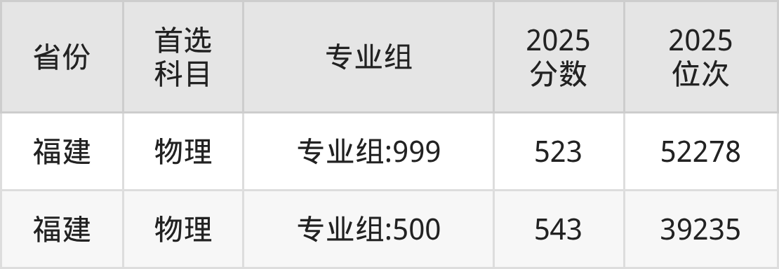 物理类最低分对应地区为福建(专业组:999),录取位次为52278,超本科线82分;最高分对应地区为福建(专业组:500),录取位次为39235,超本科线102分。