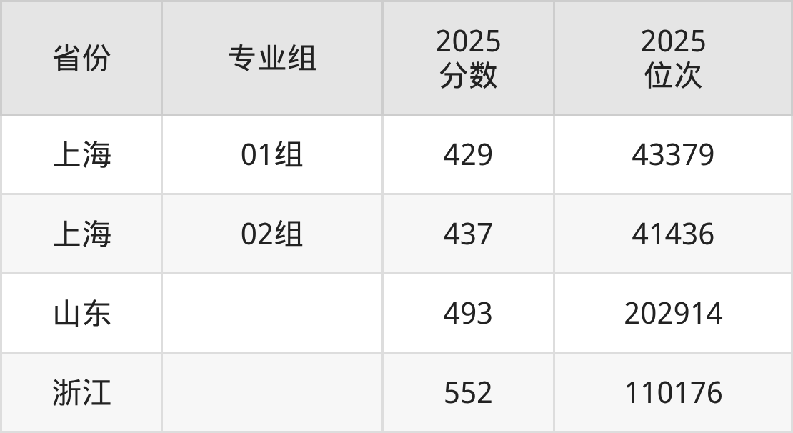 最低分对应地区为上海(01组),录取位次为43379,超本科线27分;最高分对应地区为浙江,录取位次为110176,超一段线62分。