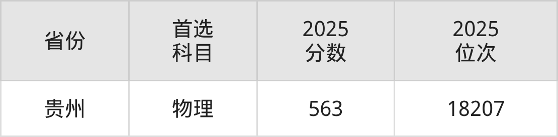 物理类最低分对应地区为贵州,录取位次为18207,超本科线176分。