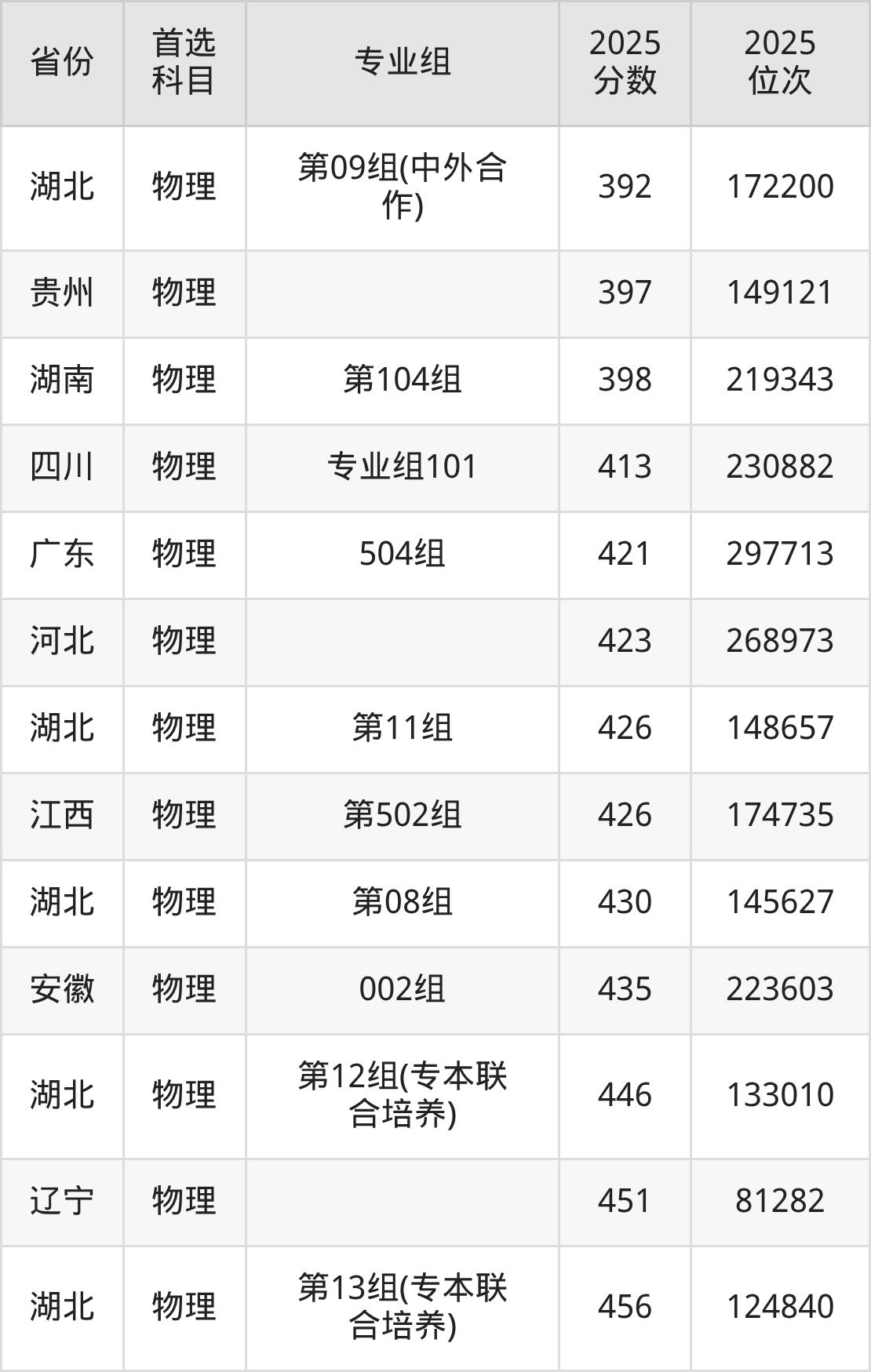 物理类:第08组430分、145627名,第09组(中外合作)392分、172200名,第10组(乡村振兴)370分、185608名,第11组426分、148657名,第12组(专本联合培养)446分、133010名,第13组(专本联合培养)456分、124840名;