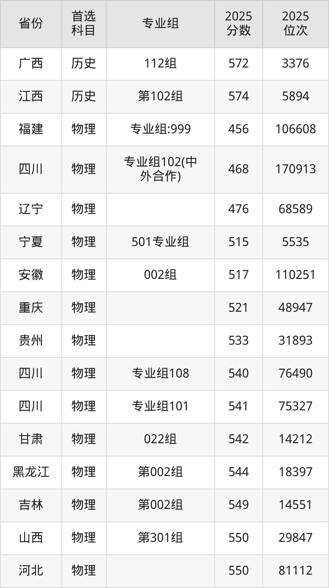 为了方便各地区考生们查看成都信息工程大学的录取情况,本文也整理出2025年成都信息工程大学在全国各省的录取分数线,供参考。