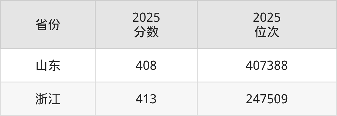 最低分对应地区为山东,录取位次为407388,超二段线258分;最高分对应地区为浙江,录取位次为247509,超二段线145分。