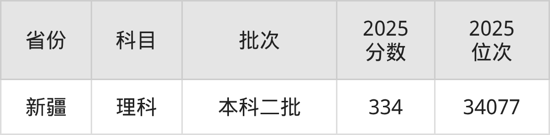 理科最低分对应地区为新疆,录取位次为34077,超二本线54分。