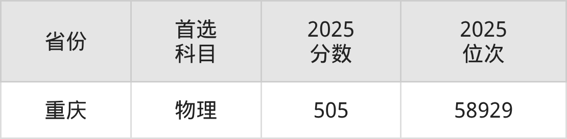 物理类最低分对应地区为重庆,录取位次为58929。