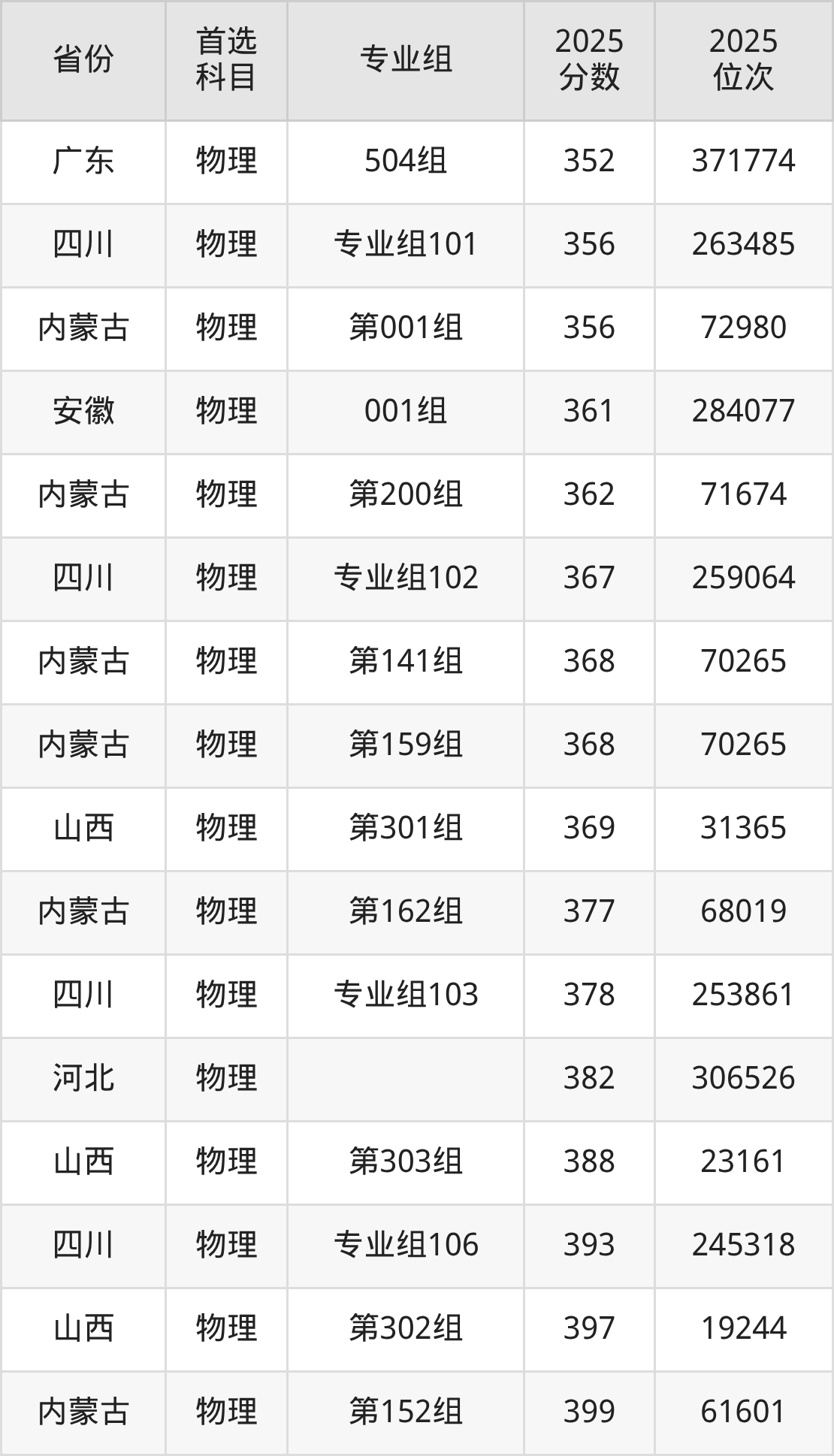 物理类:309分、136477名;