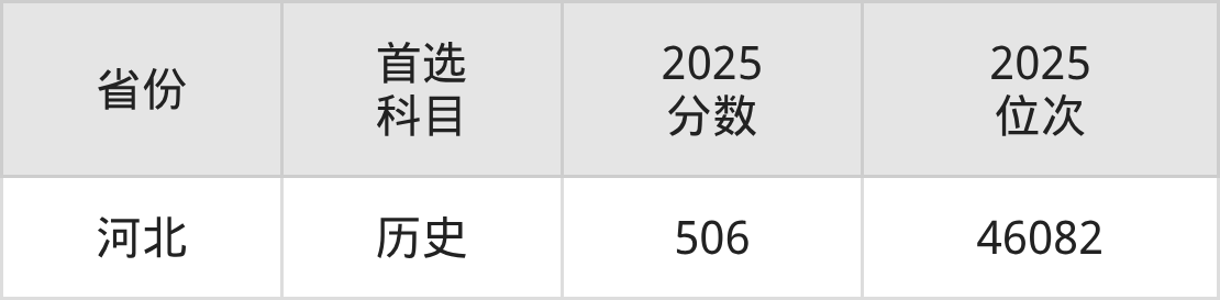 历史类最低分对应地区为河北,录取位次为46082,超本科线29分。