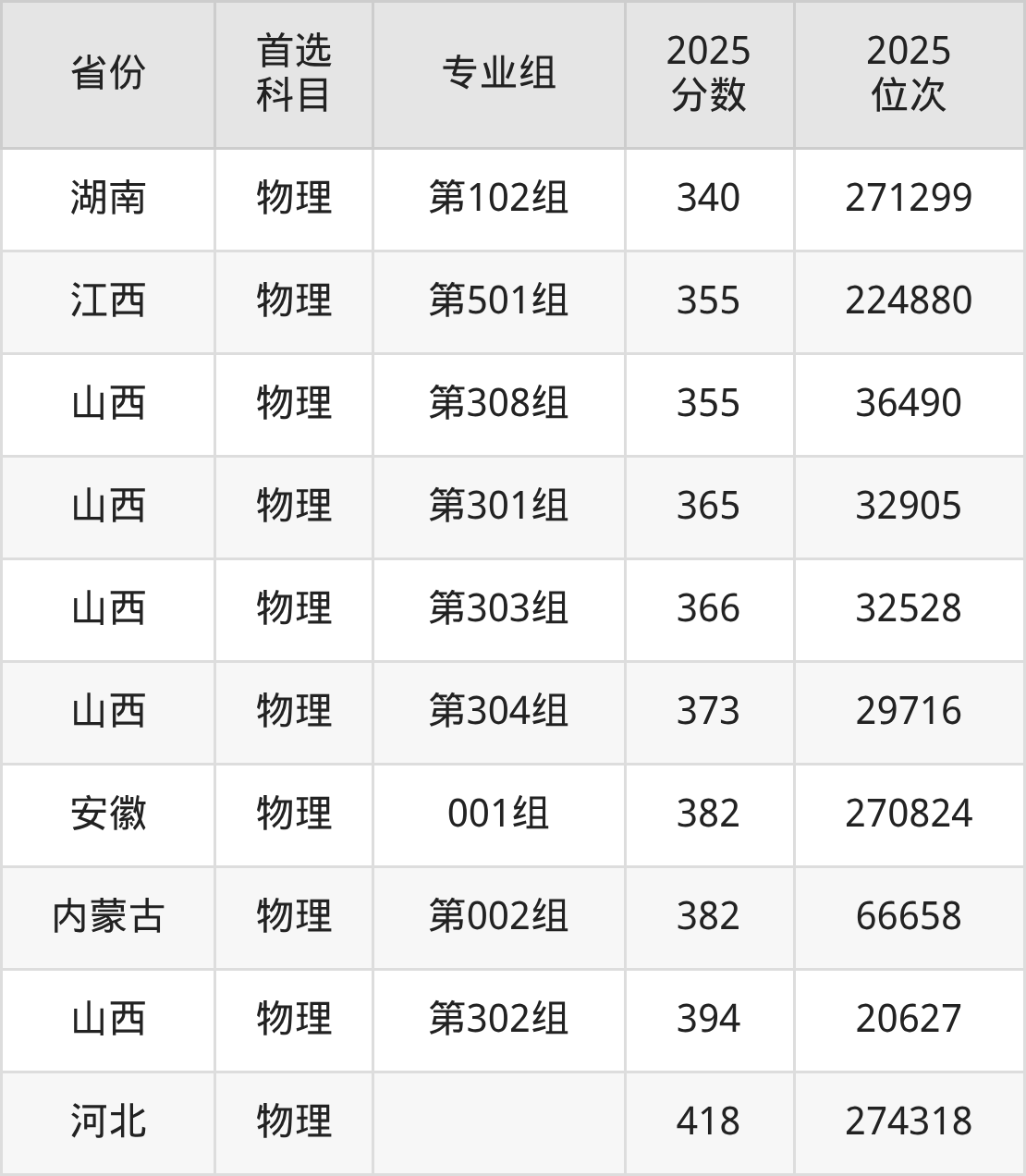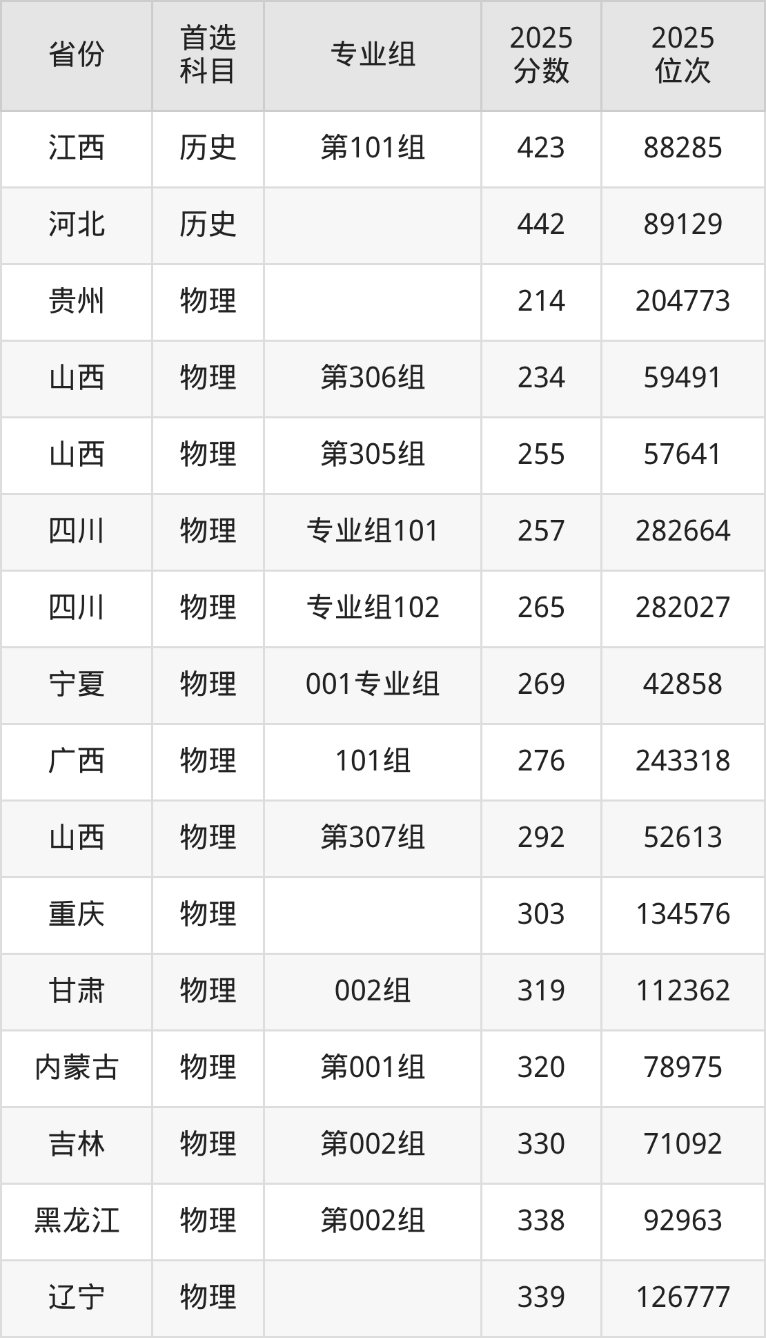 物理类:339分、126777名;
