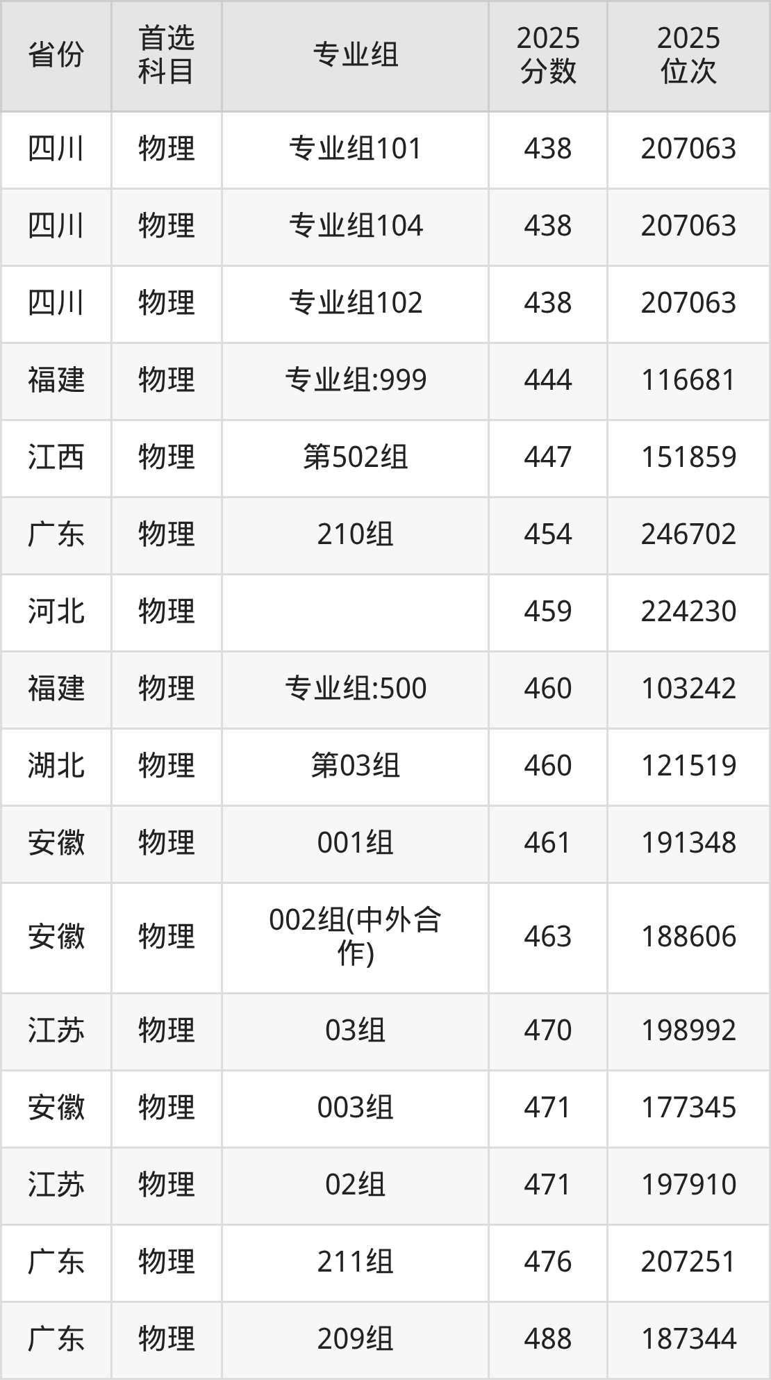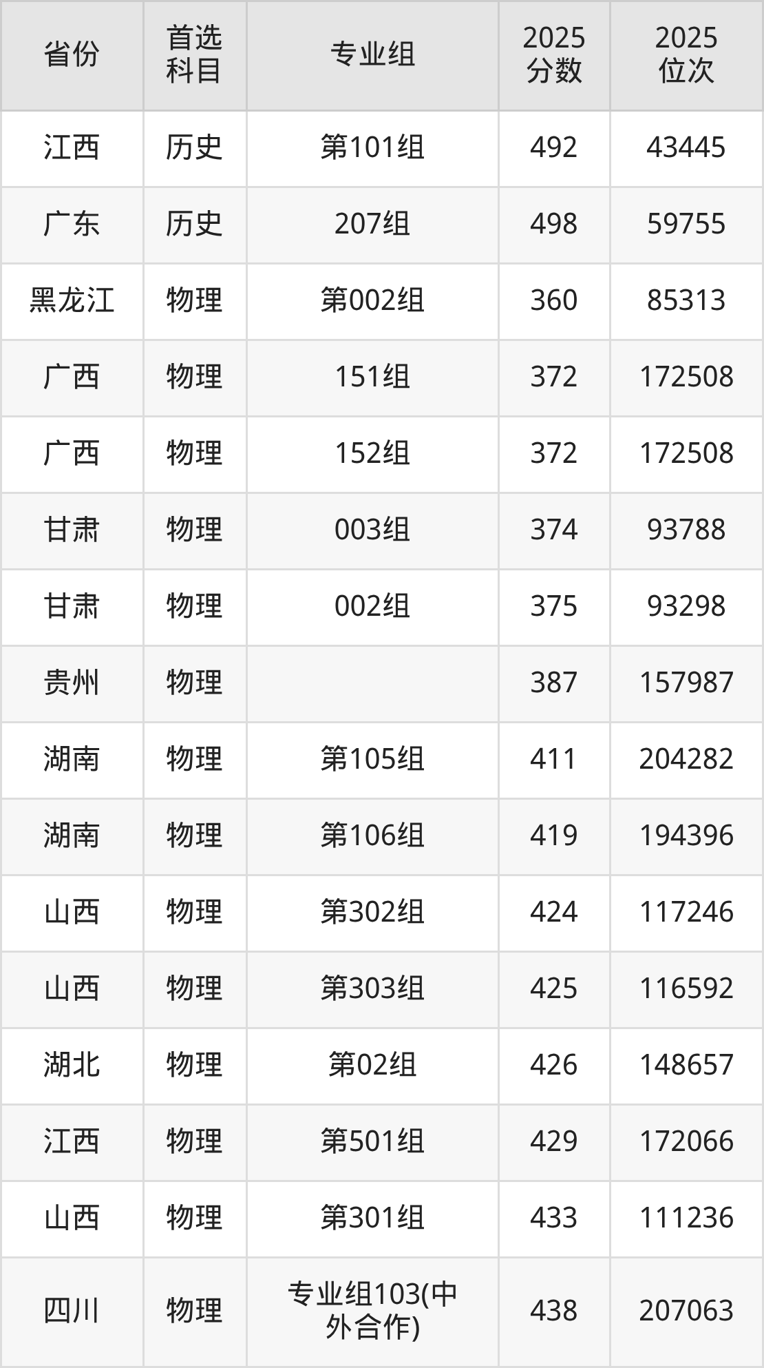 物理类最低分对应地区为黑龙江(第002组),录取位次为85313;最高分对应地区为广东(209组),录取位次为187344,超本科线52分。