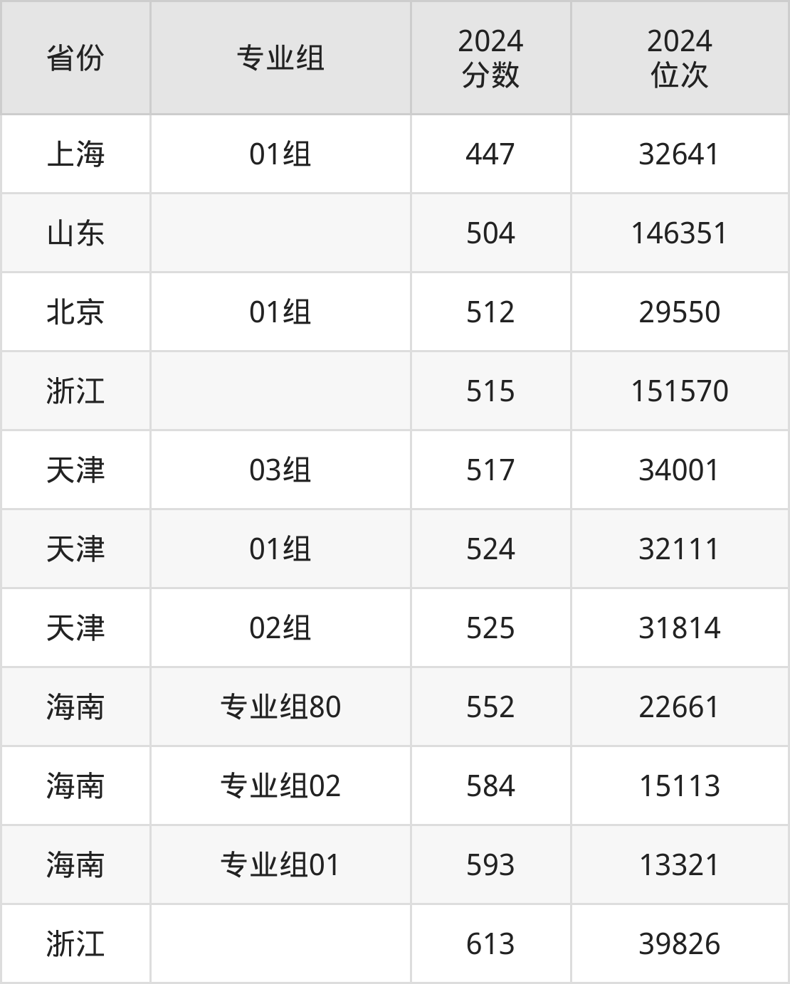 最低分对应地区为上海(01组),录取位次为32641,超本科线44分;最高分对应地区为浙江,录取位次为39826,超二段线344分。