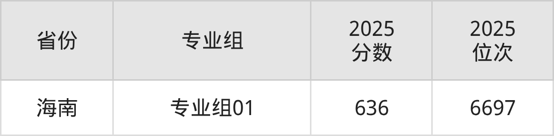 最低分对应地区为海南(专业组01),录取位次为6697,超本科线156分。