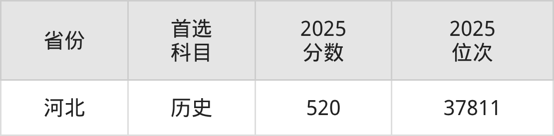 历史类最低分对应地区为河北,录取位次为37811,超本科线43分。