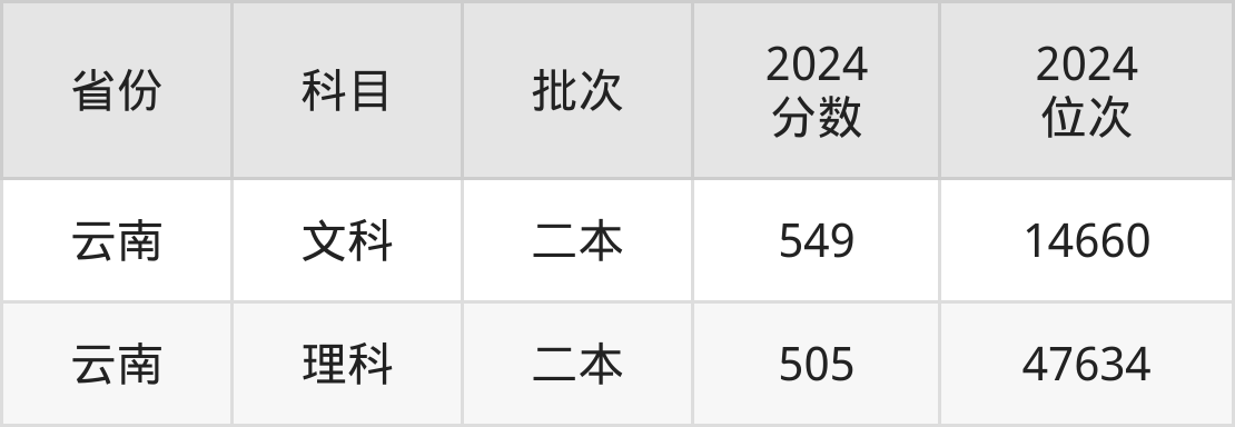 文科最低分对应地区为云南,录取位次为14660,超二本线69分。