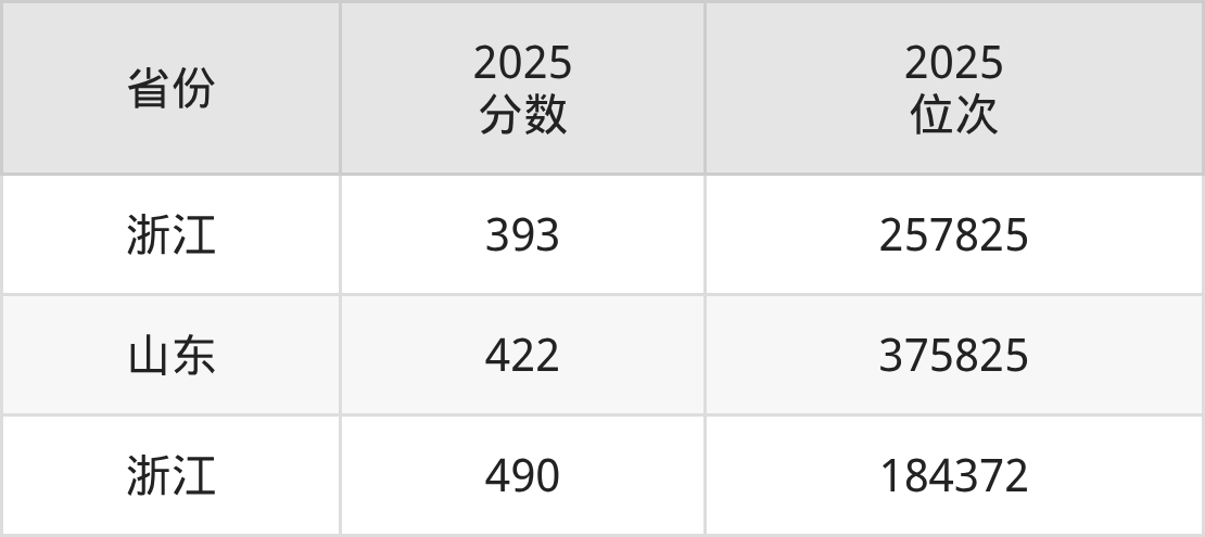 最低分对应地区为浙江,录取位次为257825,超二段线125分;最高分对应地区为浙江,录取位次为184372。