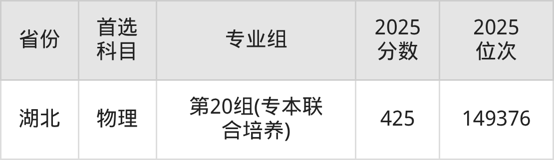 物理类最低分对应地区为内蒙古(第001组),录取位次为80551,超专科线144分;最高分对应地区为湖北(第20组(专本联合培养)),录取位次为149376,超专科线225分。
