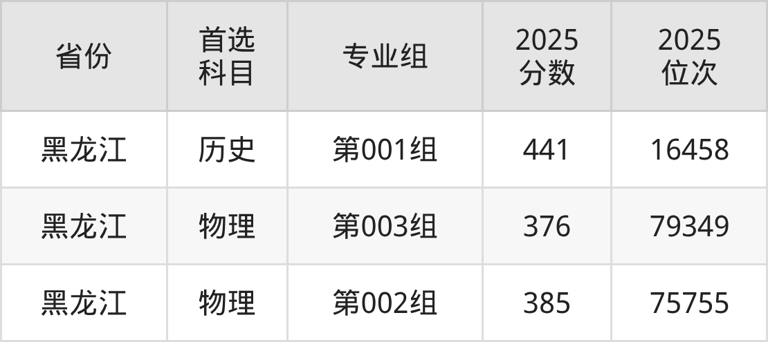 物理类最低分对应地区为黑龙江(第003组),录取位次为79349,超本科线16分;最高分对应地区为黑龙江(第002组),录取位次为75755,超本科线25分。