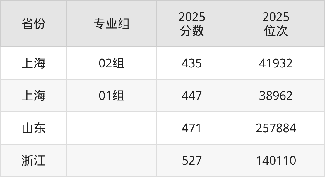 最低分对应地区为上海(02组),录取位次为41932,超本科线33分;最高分对应地区为浙江,录取位次为140110,超一段线38分。