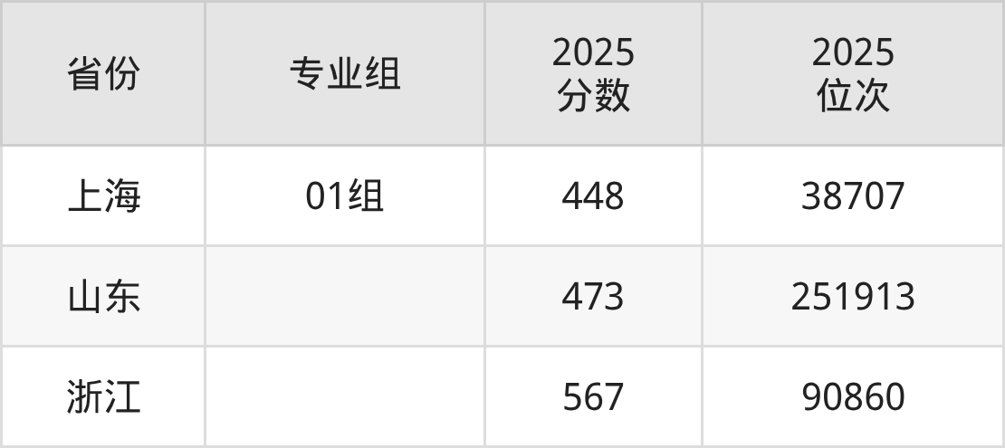 最低分对应地区为上海(01组),录取位次为38707,超本科线46分;最高分对应地区为浙江,录取位次为90860,超一段线77分。