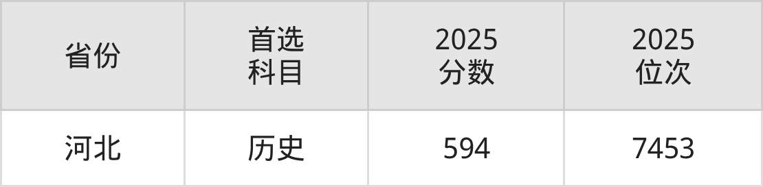 历史类最低分对应地区为河北,录取位次为7453,超本科线117分。