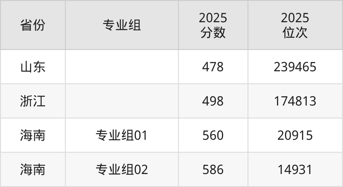 最低分对应地区为山东,录取位次为239465,超一段线63分;最高分对应地区为海南(专业组02),录取位次为14931,超本科线106分。