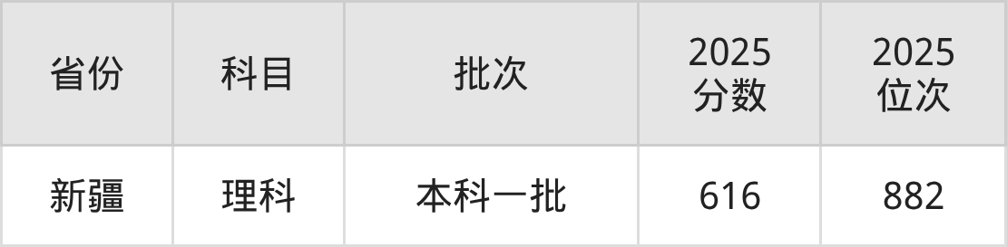理科最低分对应地区为新疆,录取位次为882,超一本线195分。