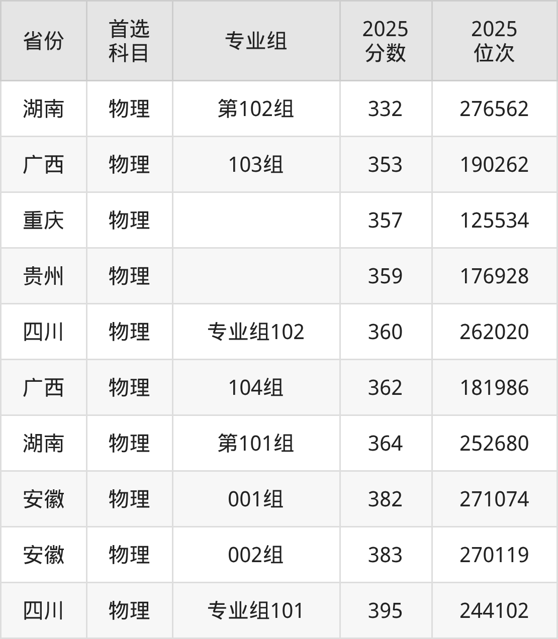 物理类:351分、175658名;