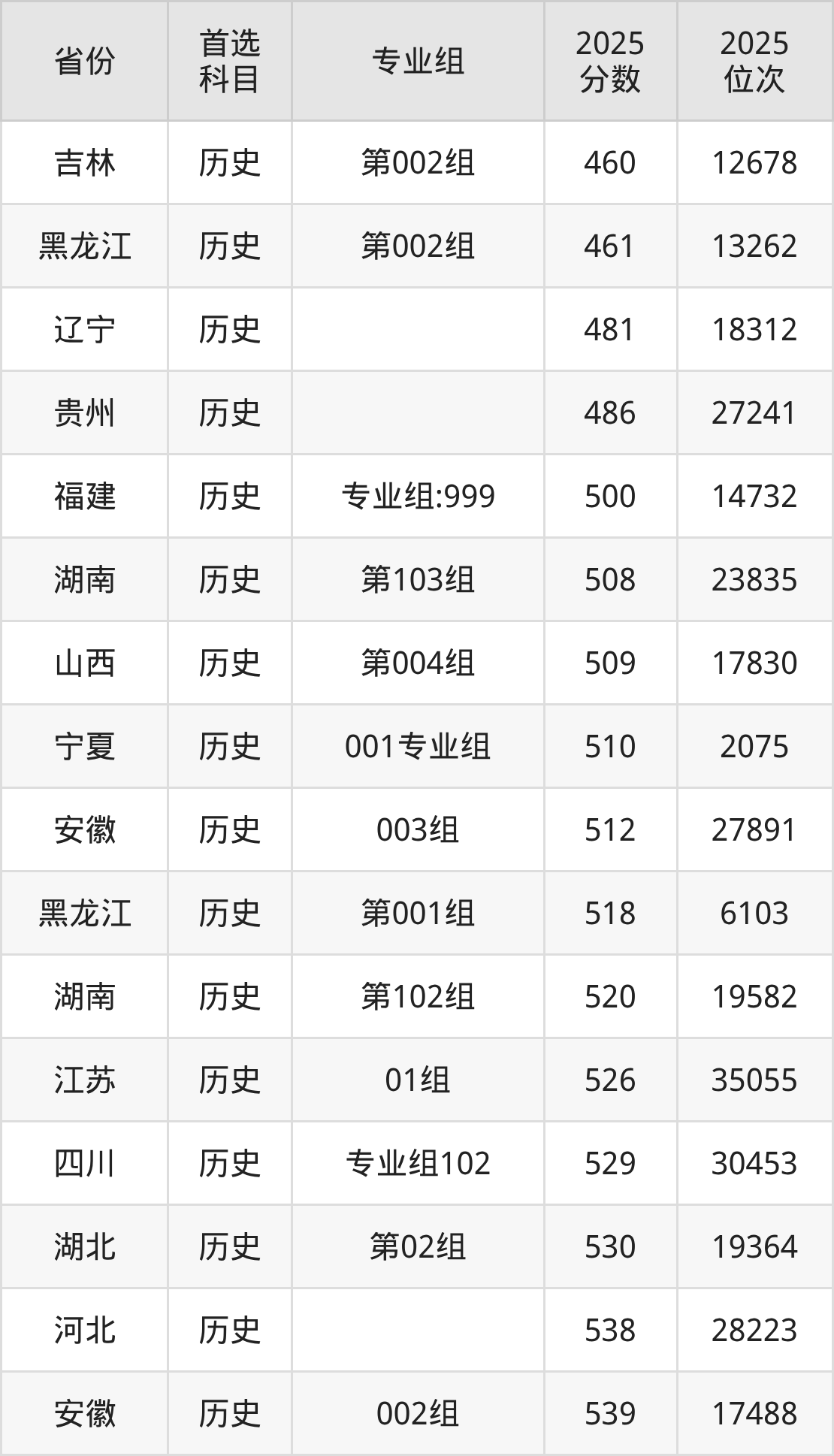 历史类:525分、25522名,541分、19141名;