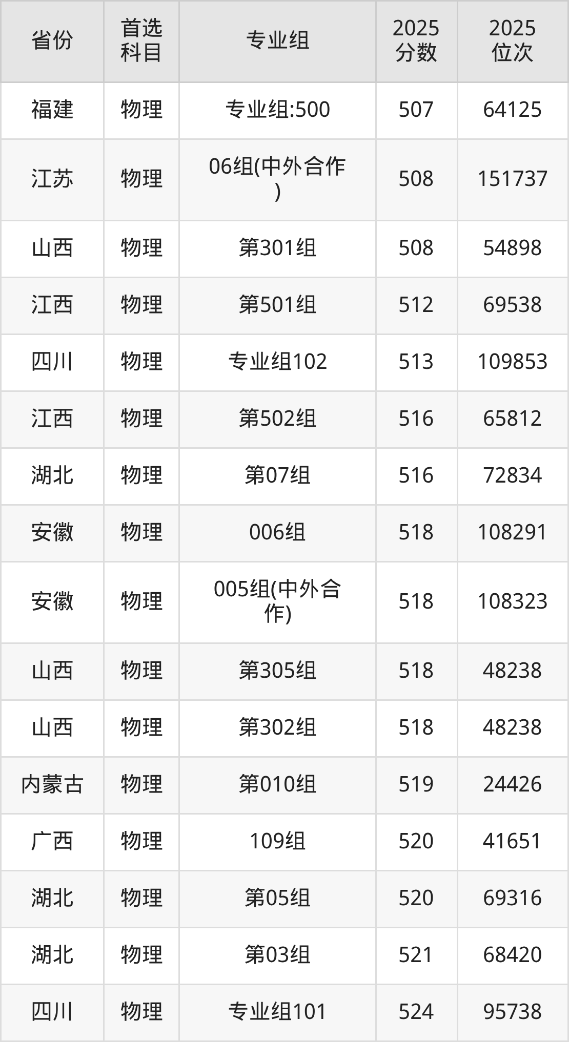 物理类:503分、117972名,518分、95680名;