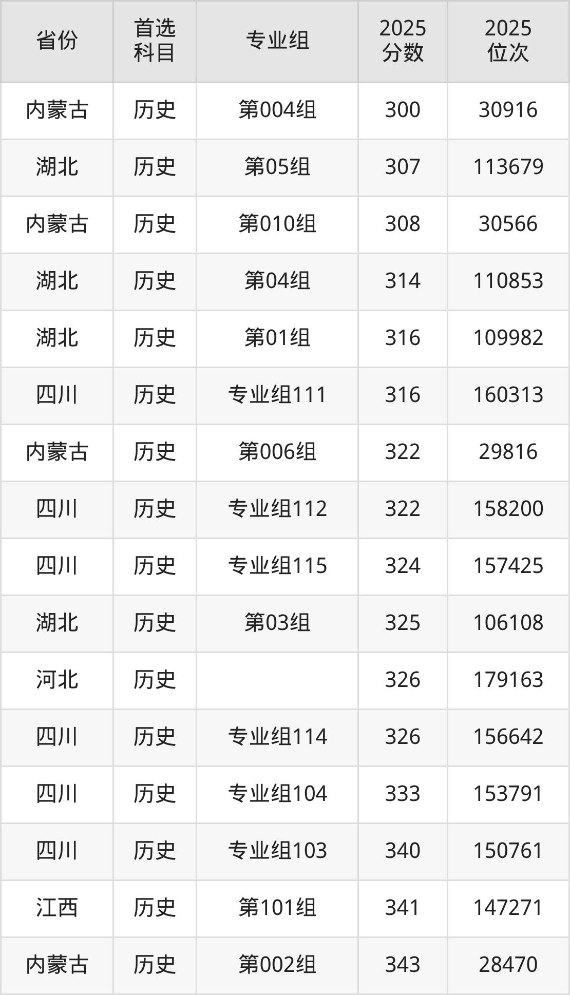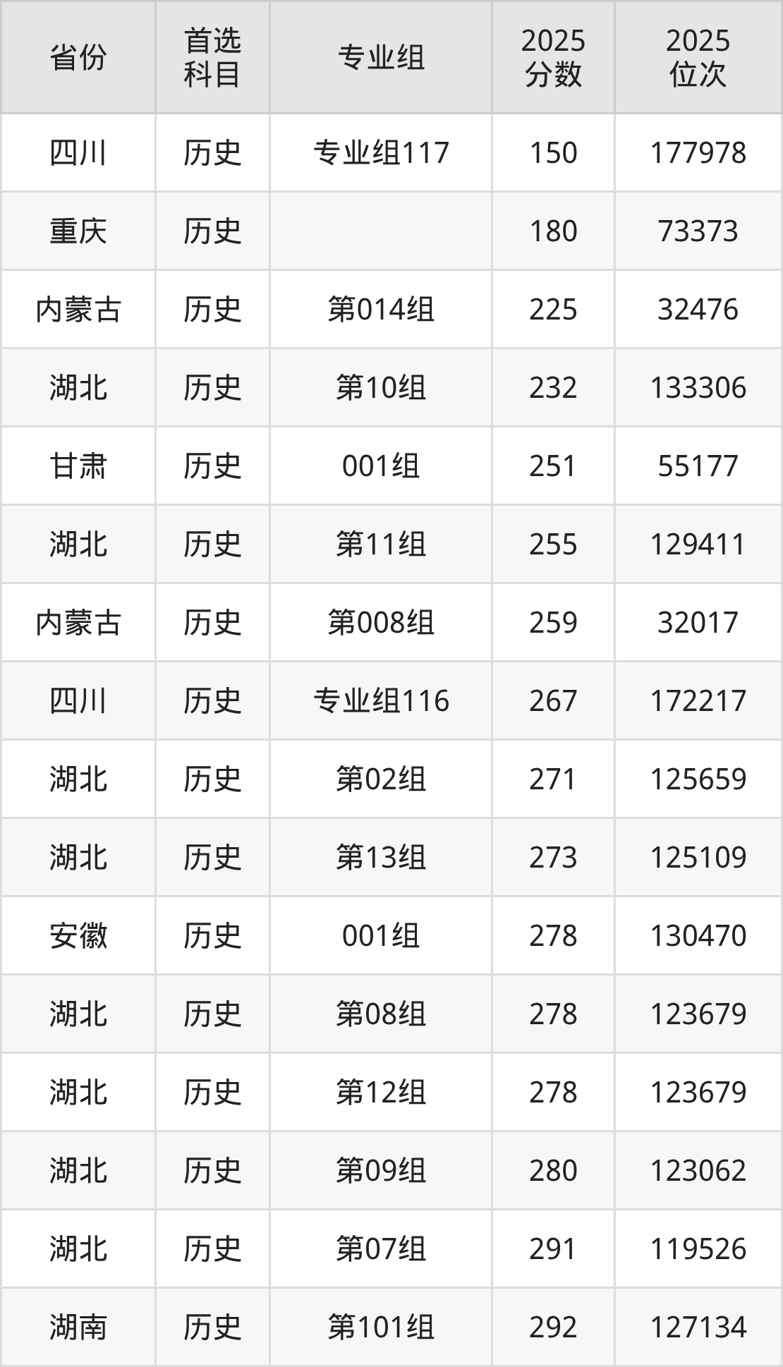 历史类最低分对应地区为四川(专业组117),录取位次为177978;最高分对应地区为四川(专业组110),录取位次为130180,超专科线228分。