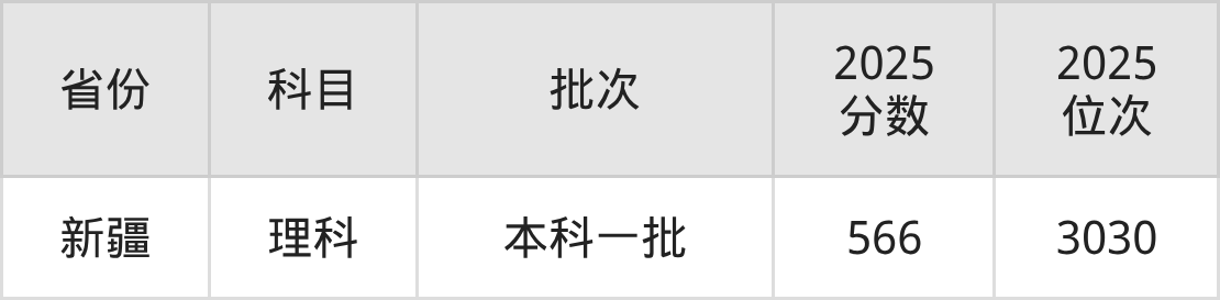 理科最低分对应地区为新疆,录取位次为3030,超一本线145分。