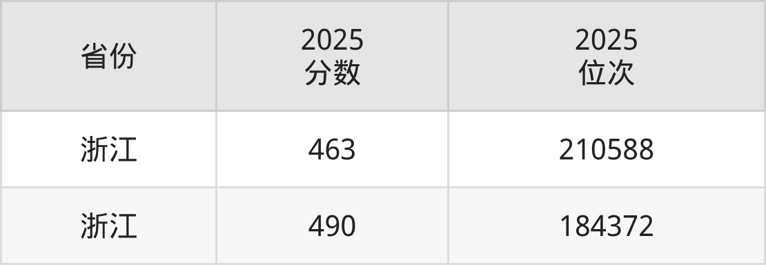 最低分对应地区为浙江,录取位次为210588,超二段线195分;最高分对应地区为浙江,录取位次为184372。