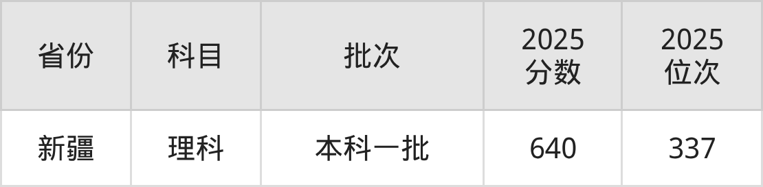 理科最低分对应地区为新疆,录取位次为337,超一本线219分。