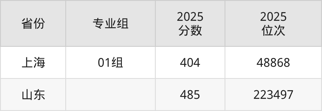 最低分对应地区为上海(01组),录取位次为48868,超本科线2分;最高分对应地区为山东,录取位次为223497,超一段线44分。
