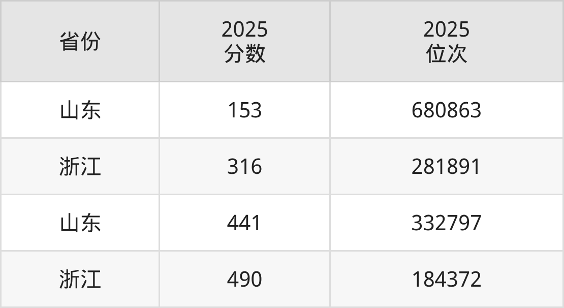 最低分对应地区为山东,录取位次为680863,超二段线3分;最高分对应地区为浙江,录取位次为184372。